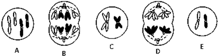 (1)细胞D中发生同源染色体分离,并且细胞质均等分裂,为减一后期的初级精母细胞,由洞蔑此可以判断该生物为雄性. (2)细胞B中存在同源染色体,并且着丝点分裂,为有丝分裂后期图.该细胞最终产生的子细胞中含有4条染色体. (3)根据(1)中判断,糟旧缠该动物为雄性,而细胞C中没有同源染色体,为减二中期细胞图,因此C细胞为次级精母细胞,此细胞染色体数与DNA分子数之比为1:2. (4)D细胞为初级精母细胞,该细胞经过减数以坊分裂能产生4个精细胞,4个精细胞经过变形产生4个精子. (5)图中具有同源染色体的细胞有ABD. (6)图中C细胞为次级精母细胞,如果E细胞是C细胞的子细胞,E细胞是精细胞.故答案为:(1)D;; ;雄性(2)有丝分裂后;;; 4(3)次级精母细胞;; ;1:2(4)初级精母细胞;; ;4(5)ABD(6)精细胞