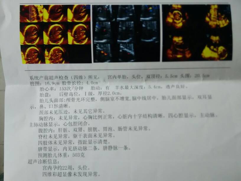 今天去做的四维彩超,帮忙看看… 今天去做的四维彩超,帮忙看看…… 点击展开 [我的还是我 2014-11-13 16:02 为您推荐: 其他回答 正常的O(∩_∩)O 铁打的女生不锈钢 2014-11-13 20:02 你的有1斤多,我还没有1斤!祝你好孕 笑口常开_0bKO 2014-11-13 19:47 正常宝宝。 雨凝 2014-11-13 16:47 祝宝妈好孕 欣欣宝贝。 2014-11-13 16:08 正常就好,祝福 天边鸟 2014-11-13 16:07 加载更多 相关问题 今天去做四维彩超,各位帮忙看一下,正常吗? 24周时做四维彩超B超单上是双肾,今天33周去检查时医生却说只看到宝宝的一个肾,有可能是单肾,孕妈