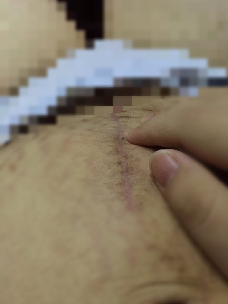 剖腹产手术一个月又18天发现刀疤中间那有个硬硬的线头,需要去医院么还是它自己会掉,如图手指的黑黑的