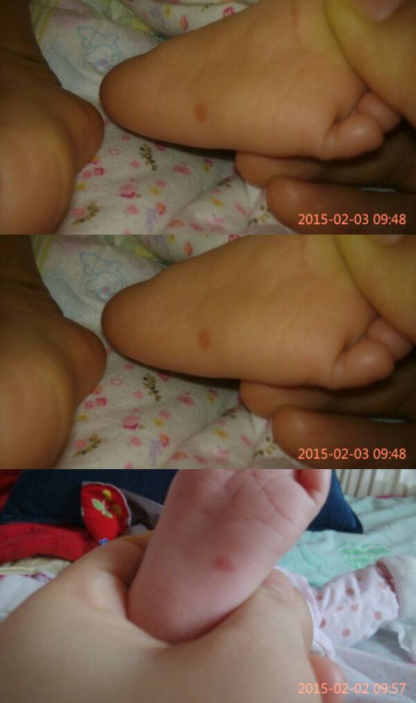 宝宝一个月时才发现脚底长了一个很圆的红疙瘩,粉红色,有一点点硬,一按颜色变浅,变成微黄色,宝宝现在