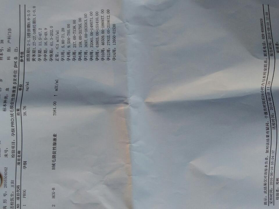 4月20号末次月经,现在7周多,胎心胎芽都有,血只有,7000miu/mi有个向上箭头,孕酮39n