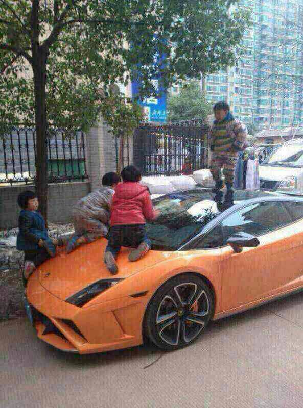 小孩子开心才是无价,兰博基尼其实也没什么!小区附近孩子们围着车看,我主动把他们抱上去,只要他们玩的