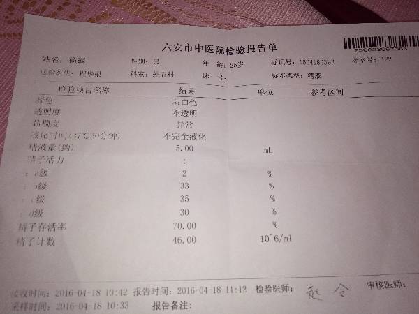 精子正常标准:约10—20分钟后凝块自行液化。ph值7.2—8.0精子总数在2000—6000万/ml.精子成活率60%以上,正常活力是a级>25%或a b>50%。低于这些标准的某一项或者几项都会影响怀孕的。 指导意见: 精子活力低的治疗方法有很多。建议医学上比较有效的方法是患者通过补锌、硒和蛋白质,可以服用2-3个月的育之缘,通过含有的锌、硒清遮梨和蛋白质,提高精子质量和精子活力,缘蒸缩短精子液化时间,促进生精功能,增强免疫力。在生活上注意加强锻炼,预防感冒等全身感染,饮食清淡,戒烟酒,避免手淫,做索性生活要规律,忌性交中断,避免久坐、骑车、骑马等,定期前列腺按摩等。