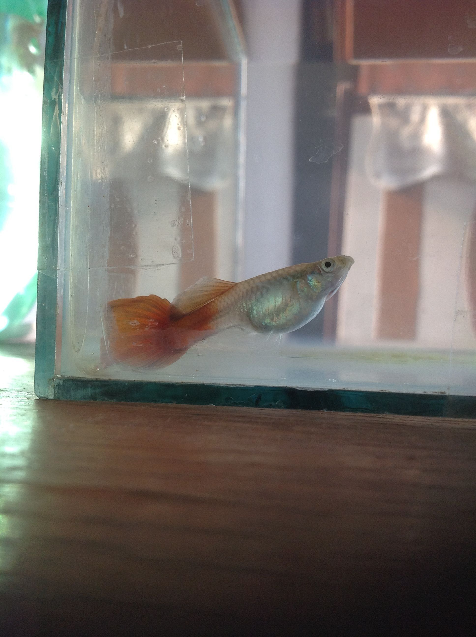 我的孔雀鱼这几天不爱吃食,偶尔趴在缸底,偶尔上蹿下跳,我觉得不正常 请大家帮我看看它是不是怀孕啦?