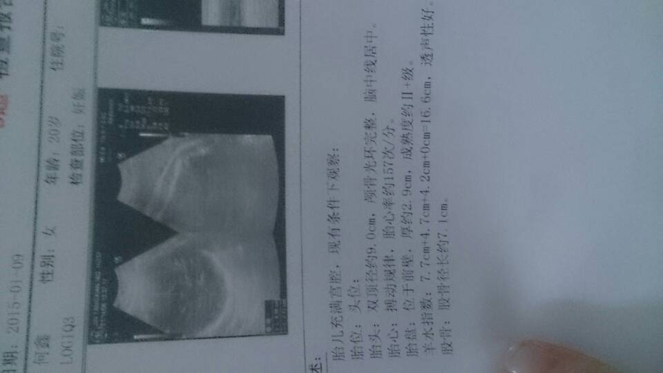 请问根据B超单能看出宝宝多重吗?37+4周是不是有点偏小喃? 点击展开 159*****026_nt2T 2015-01-09 18:51 为您推荐: 其他回答 您好,根据你宝宝的双顶径9。那可以大概算出你宝宝的体重大约是5斤8两。属于正常体重范围。 桐蓝星 2015-01-09 21:52 相关问题 明天就十三周,准备去照b超,能看出宝宝性别吗?好紧张 这是三十六周的时候去做B超,双顶径:87mm,,股骨长:72mm,这可以看出宝宝有多重吗 孕18周,去检查,医生说我严重贫血,才七克血B超看出宝宝现在挺健康,医生说可要是不好好治疗,后期