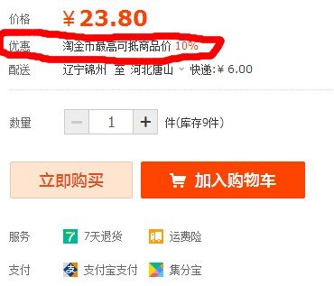 ipad上的淘宝宝贝页面 有的店铺的宝贝列中会多出来一个“优惠列”如何设置的?而有的店铺中没有这一列 点击展开 匿名用户 2014-05-28 07:24 为您推荐: 其他回答 这个就是淘金币哦。,要自己的账户有金币发才行! 匿名用户 2014-05-28 07:36 相关问题 100分悬赏!为什么淘宝宝贝详情页面的动态评分显示“该店铺未收到评价”?店铺已经两个钻了 有谁来买我的淘宝宝贝,有谁来温暖我的新开店铺?!!!!!!!!!!!!!!!!!!!!!!!!!! 复制店铺怎么复制淘宝宝贝