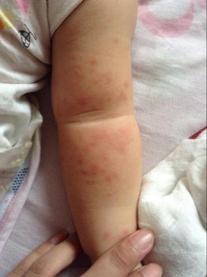 宝宝这是什么疹,到底是痱子还是过敏,还是热毒还是湿疹呢?10号开始给宝宝加奶粉,胳膊有两三颗小红疙