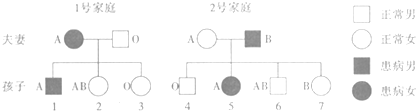 ABO 血型系统的基因位点在第 9 对染色体上.人的 ABO 血型受控于 A、B、O 三个基因,但每个人体细胞内的第 9 对染色体上只有两个 ABO 系统基因,即为 AO、AA、BO、BB、貌洞AB、OO 中的一对等位基因,其中 A 和 B 基因为显性基因,O 基因为隐性基因.ABO血型系统遗传规律见下表:父母血型;;; 子女血型;;; 不应有的血型 O+O;;;;;;;;;;; O;;;;;;;; A、B、AB O+A;;;;;;;;;; A、O;;;;;;; B、AB O+B;;;;;;;;;; B、O;;;;;;; A、AB O+AB;;;;;;;;; A、B;;;;;;; O、AB 凡叨旧A+A;;;;;;;;;; A、O;;;;;;; AB、B A+B;;;;;;; AB、A、B、O A+AB;;;;;;; A、B、AB;;;;;;; O B+B;;;;;;;;;; B、O;;;;;;; A、AB B+AB;;;;;;; A、B、AB;;;;;;; O AB+AB;;;;;; A、B、AB;;;;;;; O从表格中可以看出1号家庭子女的血型只能有A型和O型,不能有AB型或B型;2号家庭子女的血型有A型、行惑AB型、B型、O型因此,被对换的孩子可能是2号和5号,或2号和4号.故选:C