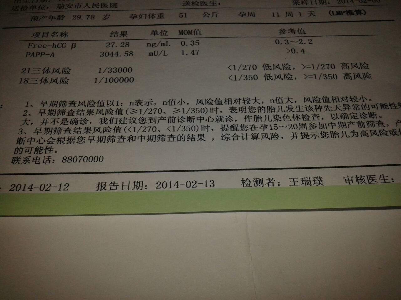 医生麻烦你们帮我看看这张早期唐氏筛查的单子 21三体风险1/33000-18三体风险1/10000