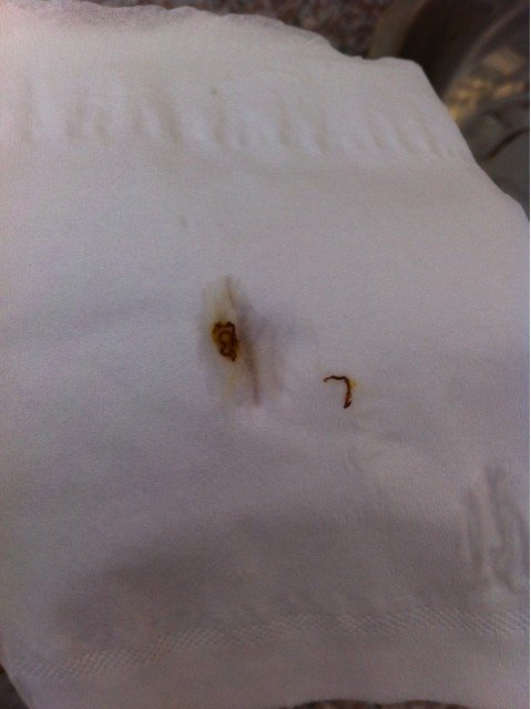 宝宝94天,今天拉了两次大便,第二次里面有这些,是蛔虫还是什么?纯母乳,昨天有舔了点香蕉跟葡萄!