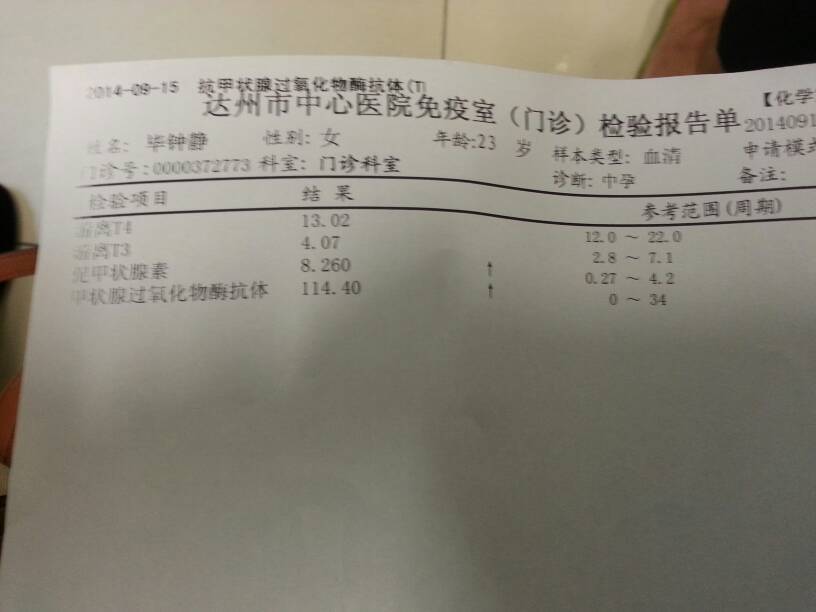 怀孕3个月了,请医生帮忙看看这份报告需不需要治疗,有没有什么大问题 谢谢! 怀孕3个月了,请医生帮忙看看这份报告需不需要治疗,有没有什么大问题。谢谢! 点击展开 静女 。 2014-09-15 16:02 为您推荐: 其他回答 不要着急,慢慢来, 睿宝140907 2014-09-15 16:10 最后两个超出范围 迎戰0 2014-09-15 16:09 当时医生怎么说的, 睿宝140907 2014-09-15 16:06 相关问题 问医生这个检验报告代表怀孕了吗? 你好,我昨天在医院验血,报告上写着确认妊娠,可是医生说没有怀孕 怀孕只有10周+5,身体报告无其他异常但是医生要求住院,不住院可以吗