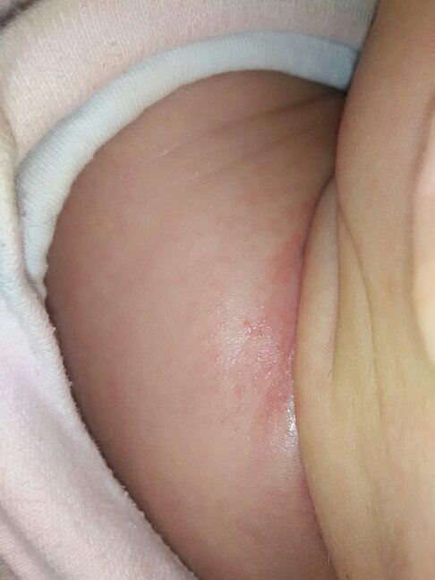 小孩子的皮肤就是这样的,建议洗干净然后擦爽身粉,强生牌的比较好