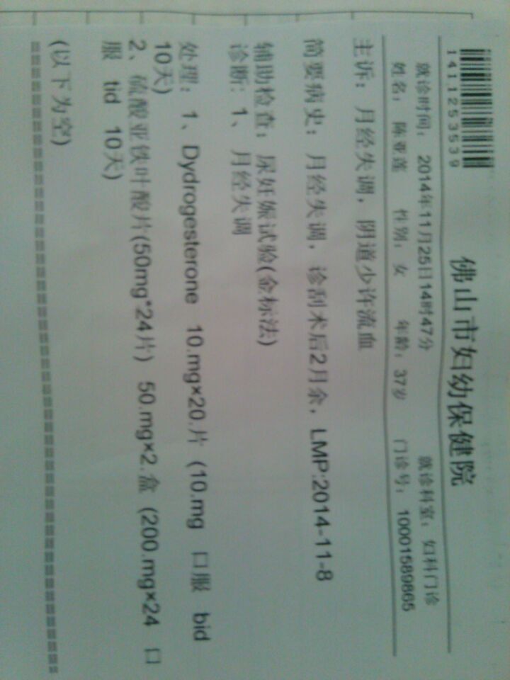 8月宫厚做了手术,10月月经不停医生开了硫酸亚铁叶酸片+地屈孕酮片(每月月经前十天服,连续服用三个月,月经正常,就是量很多。1月没服用,12月31号来的月经,1月20又来,这次量少。 请大夫帮忙查下怎么了。