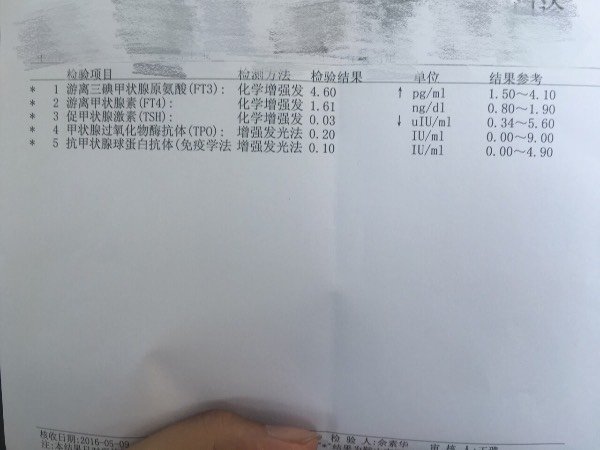怀孕两个月后检查结果 医生说可能是甲亢 也可能是怀孕导致的不稳定 有 没有能看懂的医生 ! 点击展开 匿名用户 2016-05-10 13:36 为您推荐: 其他回答 根本不用担心 母婴用户543277937 2016-05-22 16:27 这么一点点,怕什么?保持好的心态。 匿名用户 2016-05-15 15:43 相关问题 我有点儿轻微的甲亢,不能够吃碘盐,也在吃药控制,我是母乳喂养的,内分泌的医生说可以,我家宝贝两个月 我怀孕两个月,昨天去医院做白带检查,可能医生检查时太用力了,回来时有点流血,但又不像流血,像咖啡 我两个月没来月经了,带着节育环,血检尿检都显示怀孕了,可是做B超医生说没看见孕囊 过了几天就流血了