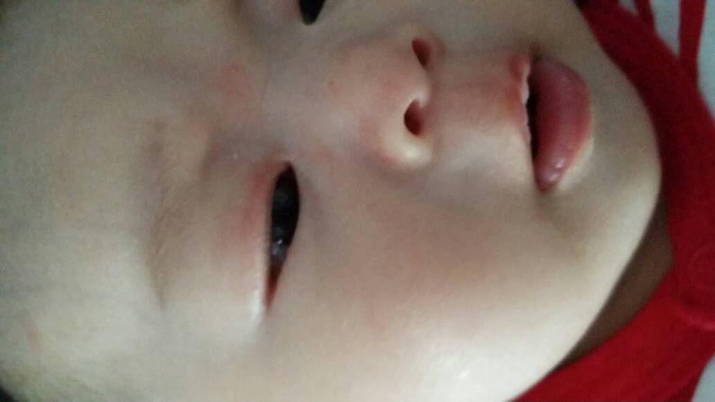 有谁知道宝宝这眼睛上是怎么了?宝贝两个多月了,昨天洗完澡到现在眼睛总是这样子,红红的 急急急