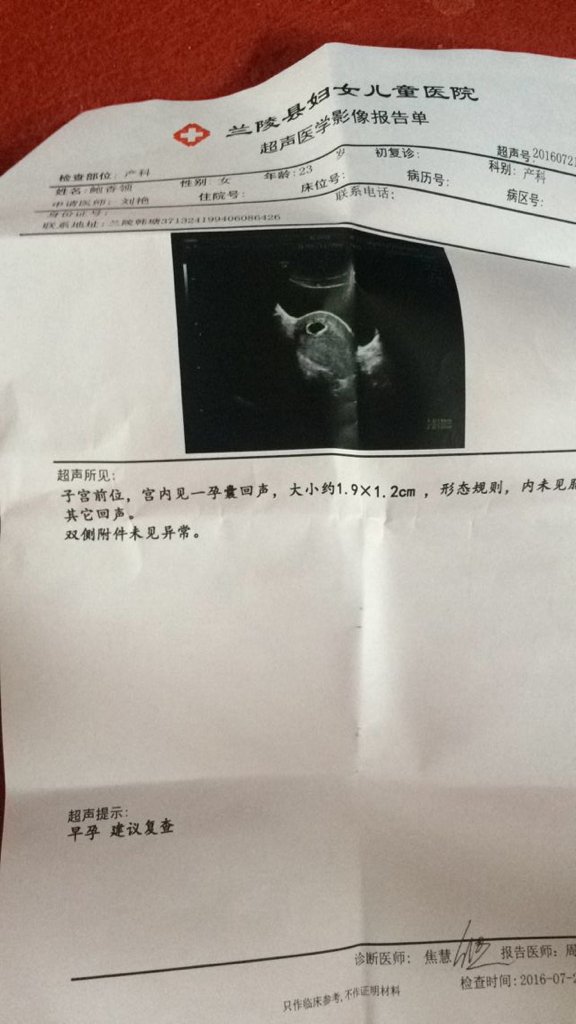 7月7号用验孕棒测试的弱阳性,7月13号验的是阳性,7月21做彩超只有孕囊,医生说可能太早,可能小