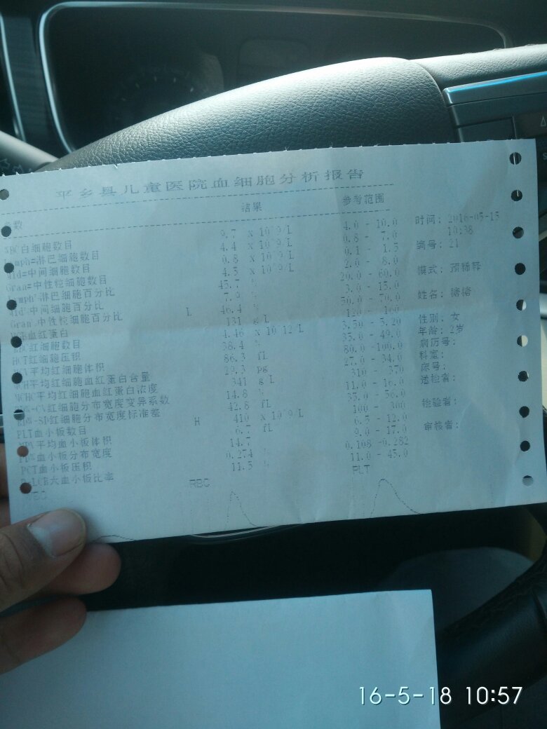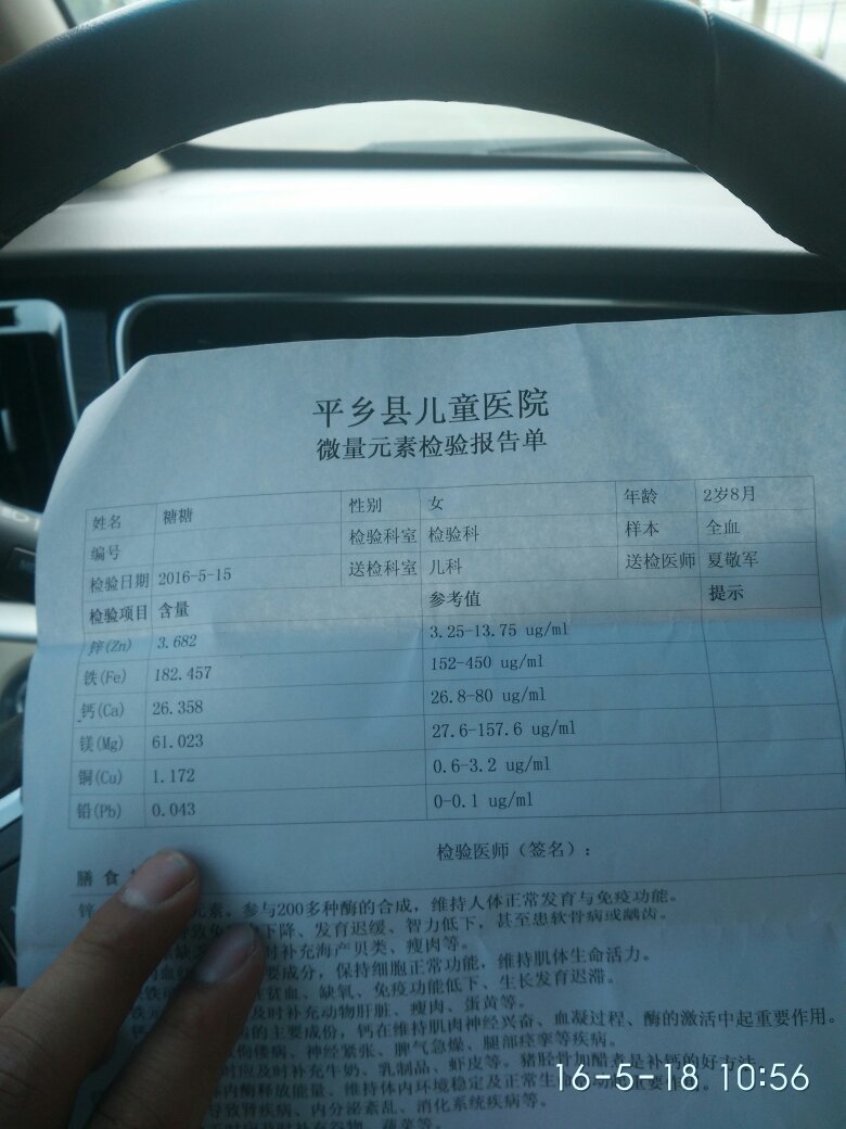 清帮我看看我孩子检查的微量元素和血常规!都正常吗? 点击展开 匿名用户 2016-05-18 23:05 满意回答 您好,拫据化验单,微量元素是正常的和血常现数值基本正常。 cn#BkLVkQfkku 2016-05-18 23:17 宝宝知道提示您:回答为网友贡献,仅供参考。 相关问题 查了血常规与微量元素有几项不正常 今天血常规检查,医生说因前期我感冒的原因血什么(我没听清)偏高,图片中的第二个,说是有点炎症,给开 有生孩子前没检查血常规的么