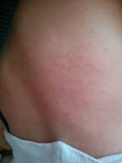 八个月宝宝,这是是出麻疹了,主要后背前胸多,耳朵后脸上不几个,可以吃海鲜吗?如果是麻疹应该注意什么