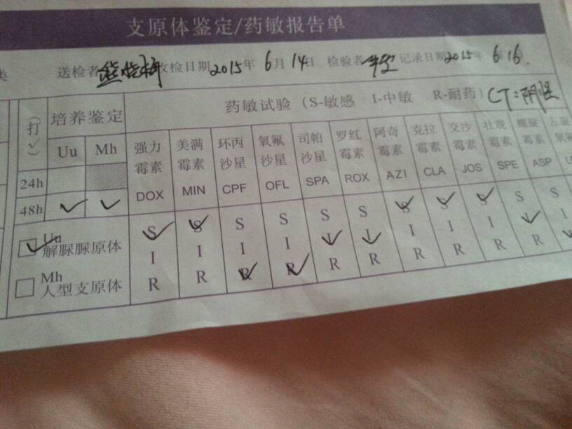 支原体鉴定CT阴性培养坚定Uu48hMh48h\解脲脲原体强力霉素、美满霉素、阿奇霉素克拉霉素、交