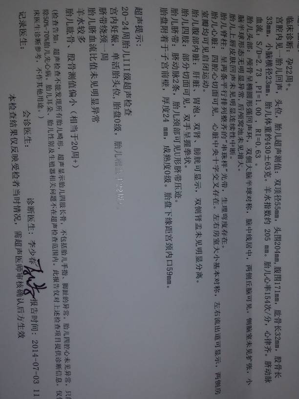 医生说胎儿手脚短,帮帮忙看一下报告是否有问题 医生说胎儿手脚短,帮帮忙看一下报告是否有问题 点击展开 &思绪飞展& 2014-07-30 21:09 为您推荐: 其他回答 正常饮食吧 有法律制裁你的 2014-07-31 16:13 你好,正常22周左右的标准双顶径是53这个是头大小,腿长是股骨的标准是39,你的才33是有一些短,不过现在才22周后面还有十几周的时间,可以我多吃一些补充营养 有法律制裁你的 2014-07-31 07:51 相关问题 今天去医院做b超,医生说胎儿手脚偏短,要紧吗 孕32周,B超报告医生说胎儿偏小,请问胎儿腹径84×68mm偏小吗?正常值应该多少?医生说我营养 昨天早上阴道出血,去医院检查,医生说是早孕先兆性流产,做b超胎儿存活,今天可验血报告出来,孕酮值