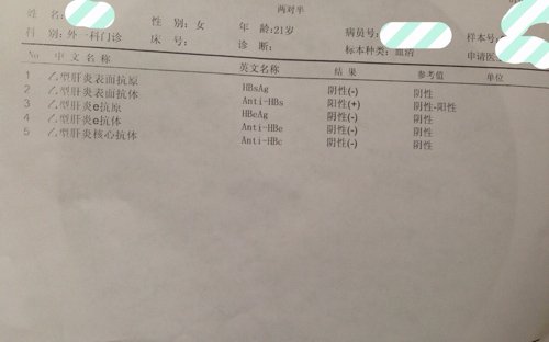 病情分析: 你好,根据你的检查结果乙肝表面抗体阳性,其他检查结果阴性属于正常的,说明产生了乙肝保护性抗体 指导意见: 这种情况与接种乙肝疫苗有关系的,乙肝保护性抗体的作用一般为3-5年,为了避免保护性抗体消失,需要每3年加强注射一针乙肝疫苗