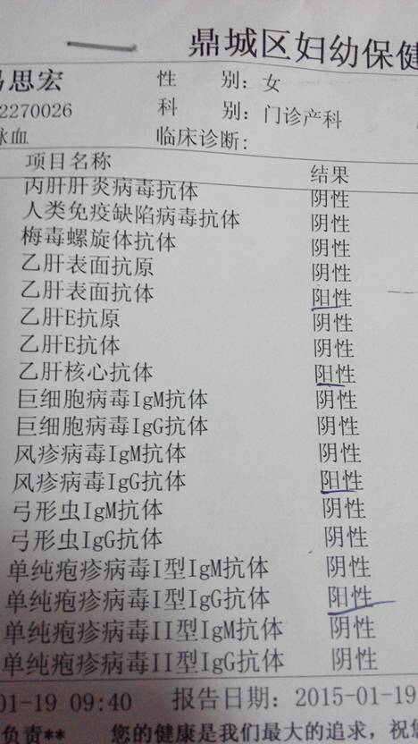 我孕前检查~乙肝表面抗体~乙肝核心抗体~单纯疱疹病毒 i型 igg抗体~风疹病毒 igg抗体成阳性