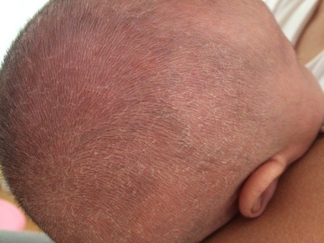 请问宝宝头上怎么总是起皮啊?之前特别多,用香油敷完好点,这两天又起来了 去医院说是脂溢性皮炎,用皮