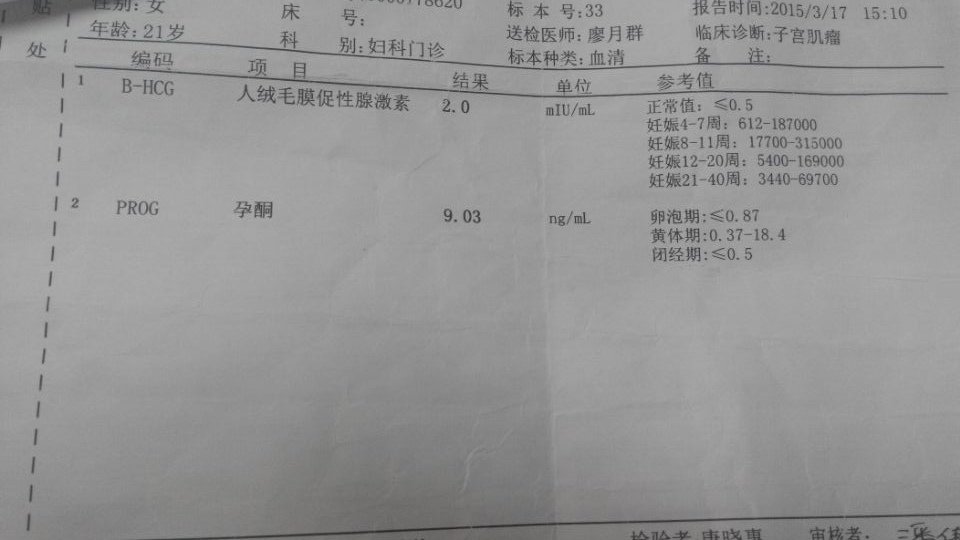 阴道彩超现实子宫内膜有4.5*4.4大的卵泡,验尿阴性,验血HCG2.0,孕酮9.03,是怀孕了么? 医生说是卵巢囊肿,建议我吃催经药,做手术,后来给另外一个医生看,说可能是怀孕导致的卵巢囊肿,2月16号最后一次来月经,到现在还未来月经,月经一直都正常,这两个月早上刷牙就想呕吐,这几天拉肚子,我到底是不是怀孕?为什么月经还不来,需要怎么办?请求急需回答,感激不尽。 点击展开 匿名用户 2015-03-19 10:41 为您推荐: 其他回答 你好,根据你提供的信息目前考虑怀孕的几率不大,建议定期检查。 五彩缤纷20143 2015-03-19 12:25 相关问题 第一次黑白超现实子宫内膜有3 8*3 4大的卵泡,验尿阴性,验血HCG2 0,孕酮9 03,是怀孕了么? 之前验血说孕酮低就开了保胎药吃,阴道有流点浅浅的红色吧,反正很浅很浅,今天再去验孕酮正常了,但是今 我一月4号来月经,排卵推迟啦,25号排卵 2月23日验血说hcg59 79 孕酮17 2,2月26日下午突然肚子阵痛,阴道