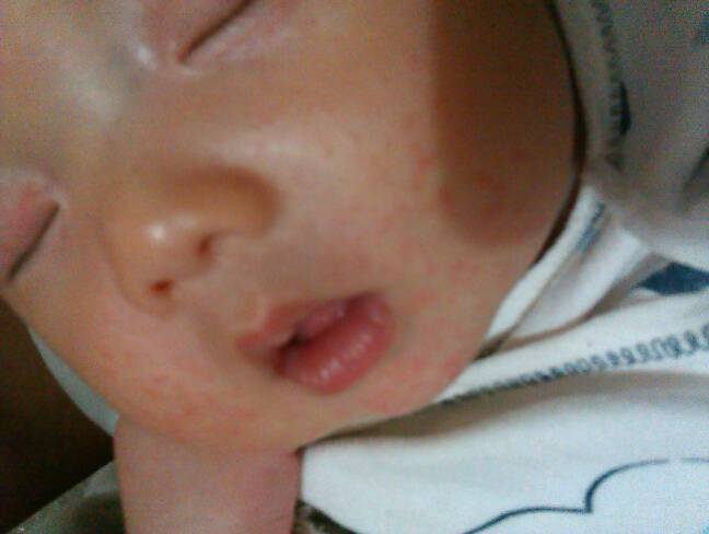 患儿面部的症状初步考虑面部痤疮病,这种情况也是婴儿时期比较常见的,一般在数月后可自愈的。患儿出现面部这种表现也是出现体内有热的表现,治疗上可用金银花泡水喂服进行治疗,或者局部的面部外用母乳擦进行治疗。