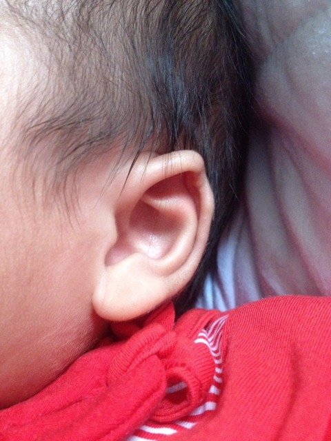 帮忙看看宝宝的耳朵,一个耳朵是宝宝喜欢一侧睡压着了,听说用手经常捏捏会好,另一个耳朵(照片),感觉