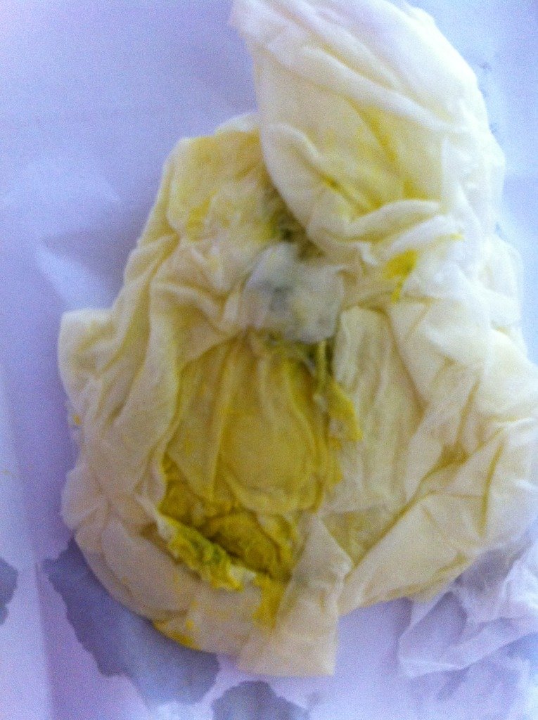 着凉了~多注意护着肚脐,要给宝宝穿上袜子~多喝水