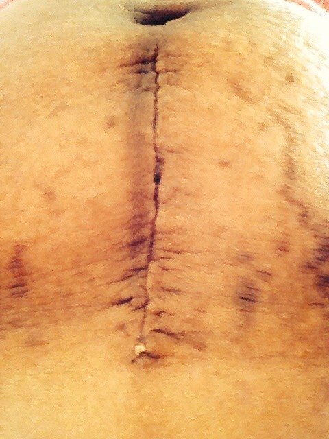 剖腹产第16天,前几天肚子绑了医院得那个瘦腰带,这几天没绑,觉得刀疤附近有点疼,上传了一张图,刀疤