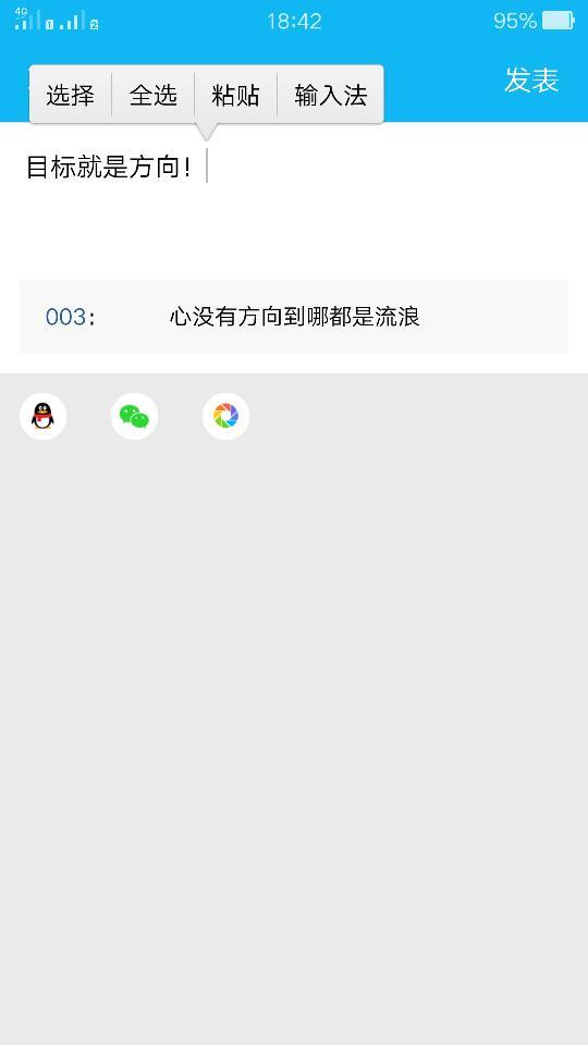 转发 我喜欢的女孩的说说我这样说可以吗?她知道我喜欢她(目标就是方向 你就是我的动力),我觉得你 转发 我喜欢的女孩的说说我这样说可以吗?她知道我喜欢她。(目标就是方向 你就是我的动力),我觉得你就是我的动力,不合适吧 点击展开 匿名用户 2016-04-20 18:43 为您推荐: 其他回答 勇敢表达吧,这句话很合适,挺有哲理的。(目标就是方向,你就是我的动力)!点个赞! 咏夫毅然 2016-04-20 18:55 z 匿名用户 2016-04-20 18:44 应该说“爱情是方向,你就是我的目标”,这样比较好吧 钮婉静_dtKT 2016-04-20 18:44 相关问题 没有好奇心,目标,方向,动力时迷茫了怎么办 我喜欢一个女孩,她就是我同事,低头不见抬头见,我喜欢她,她也知道我喜欢她,可是她不喜欢我,谁大神可 之前我喜欢一个女孩,她也知道,就是我不怎么和她说话,她曾经暗示我说,你要是喜欢一个人你要经常和她聊
