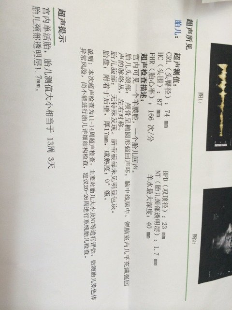 今天13周,去做了产科B超,其中有一项胎儿脐血流监测,请帮忙看下结果中是否体现了,报告也是正常的吧 今天13周,去做了产科B超,其中有一项胎儿脐血流监测,请帮忙看下结果中是否体现了,报告也是正常的吧? 点击展开 朵朵_pQtm 2014-10-09 15:39 为您推荐: 其他回答 我广东的。 黄太太的宝贝❤️ 2014-10-11 23:14 你是哪里的妇幼啊? 黄太太的宝贝❤️ 2014-10-10 17:48 我的是妇幼医院,也挺大的啊 黄太太的宝贝❤️ 2014-10-10 11:51 去医院看看 幸福“宝贝” 2014-10-10 11:23 建议去医院问医生 洋洋_zGHw 2014-10-10 08:10 加载更多 相关问题 今天检查医生说宫缩的太平凡了,查脐血流值太低了,做B超又说孩子偏小两周,怎么办啊?是不是意味着要剖 胎儿脐血流是什么???今天去做了,那医生按的太用力,肚脐还痛!!!胎儿也动得厉害了 我怀孕31周了今天做B超说:胎儿颈部可见探及"U"形脐带压迹,其内可见血流环绕,脐血流S/D:2、