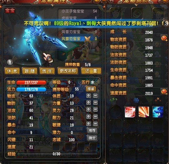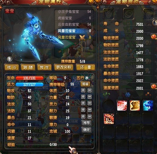 QQ仙灵风雪刃宝宝的属性
