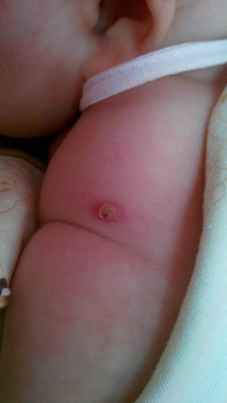 孩子刚出生打的第一针现在孩子已经42天了怎么有点化脓了呢 请问正常么?