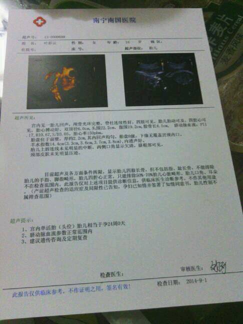 这是昨天去做的四维彩超,医生说发育的很好 这是昨天去做的四维彩超,医生说发育的很好。 点击展开 红尘泪梦 2014-09-02 21:48 为您推荐: 其他回答 恭喜宝妈注意营养注意休息 宝宝一岁八个月了 2014-09-02 22:24 嗯啊,那就恭喜宝妈,祝好孕 淡水伊人 2014-09-02 22:16 根据你的超声单上的描述,确实一切正常,恭喜你,以后要保持良好心情,适当的运动,定时的产检。 潇洒行走天涯 2014-09-02 21:50 相关问题 前几天做的b超医生说宝宝发育很好,请问下我之后多久还去做什么检查呢 昨天去医院做检查,医生说什么都很好,很正常,为什么今天一天小腹左侧都疼,是怎么回事? 今天去做bc医生说发育很好营养也很好都像不止三个月的胎宝宝!就是有点羊水少了我该怎么补羊水喔?