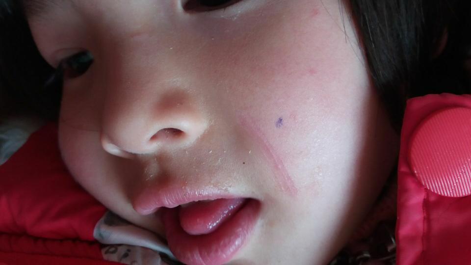 宝宝脸上被树枝划伤一个多月了还是这样,应该不会好了,请问怎样才能去掉疤痕?请各位懂的朋友说一下,最