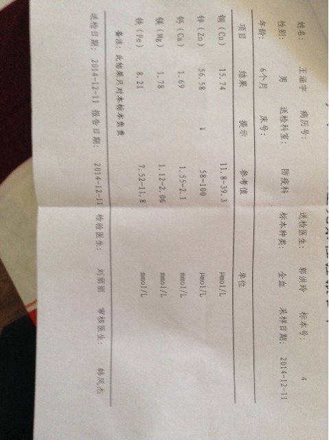 我家宝宝快七个月了没出牙呢,晚上睡觉总醒,不给吃奶就哭,还爱踢被 这是前两天的微量元素检查结果,睡
