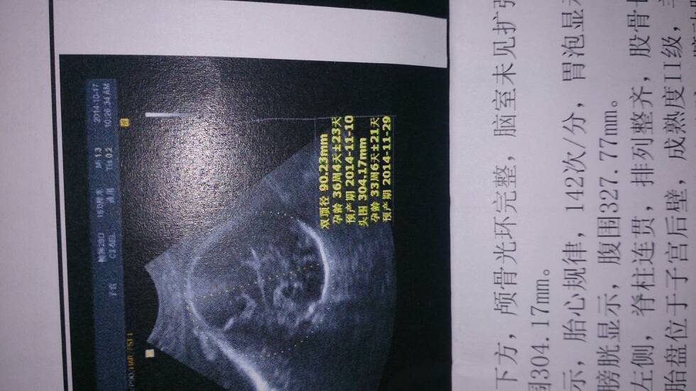 大家帮忙看看,这彩超怎么显示3个预产期?我的胎宝宝是不是有问题啊? 大家帮忙看看,这彩超怎么显示3个预产期?我的胎宝宝是不是有问题啊? 点击展开 柏娟 2014-10-20 10:27 为您推荐: 其他回答 你说的情况应该是问题不大的,本身头和腿的发育也不是一定同步的,但是如果差异明显的话,需要注意畸形的情况的。 知道张纪阳 2014-10-20 17:44 那有三个预产期你看错了吧 秋忧月伤 2014-10-20 11:16 是不是医生给打错了? 竟无人伴我共白头 2014-10-20 10:52 不好意思打扰了。 彩朵1314 2014-10-20 10:46 有问题医生会是什么的 怜宝 2014-10-20 10:44 加载更多 相关问题 都过了预产期了,去彩超,却显示这样的,有问题么? 孕276天,距离预产期还有4天,今天做彩超显示胎儿一侧头颅内探及3 1*0 7cm无回声区 我老婆明天就是预产期,今天彩超显示:双顶径8 6CM~股骨6 3CM~ 医生说小孩儿还不到足月,小孩正常吗?
