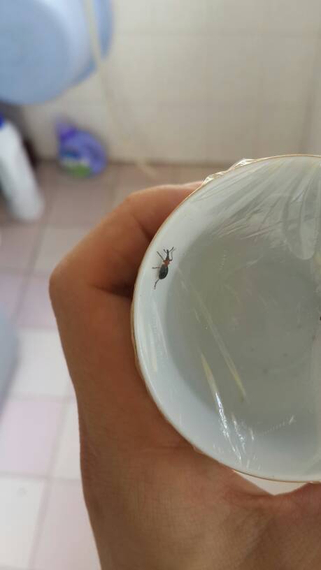 你家里是否有陈年的粮食啊,这个好像是米象。又称象鼻虫。常在谷物中被发现,因为繁殖速度快,为谷物中主要的害虫之一。看看存放粮食的地方,有没有这家伙出没。