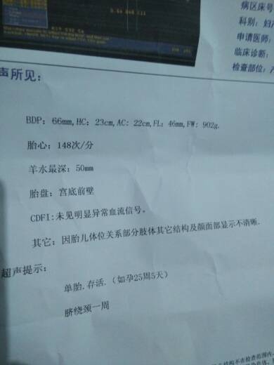 今天去照四维彩超,因为宝宝不给面子,一张照片都没有照到,好失望哦 请朋友医生给看看,谢谢 点击展开 萍妤 2014-11-25 18:26 为您推荐: 其他回答 你好,报告提示胎儿的胎心正常,羊水正常。胎盘的位置正常。建议按时产检, 文斯6 2014-11-25 20:48 相关问题 为什么我做的四维彩超单子上却是黑白的都看不见宝宝,四维不是黄色的么而且能看见宝宝的,怎么回事医生说 怀孕五个月半月了,做了个四维彩超医生说宝宝的肾有点小毛病 我很担心请问这以后会好吗? 急急急 我有一个朋友,怀孕五个月了,去照四维彩超时,医生给她说宝宝的两个肾分的有点开,说是如果七