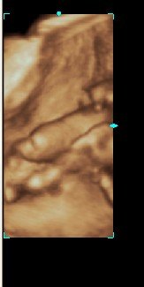 你们当然看不懂,报告正常就够了。图像里包含的胎儿信息较多,有一部分脸的侧面,一个手掌和一个足遮盖在侧脸上,其余是子宫内壁。