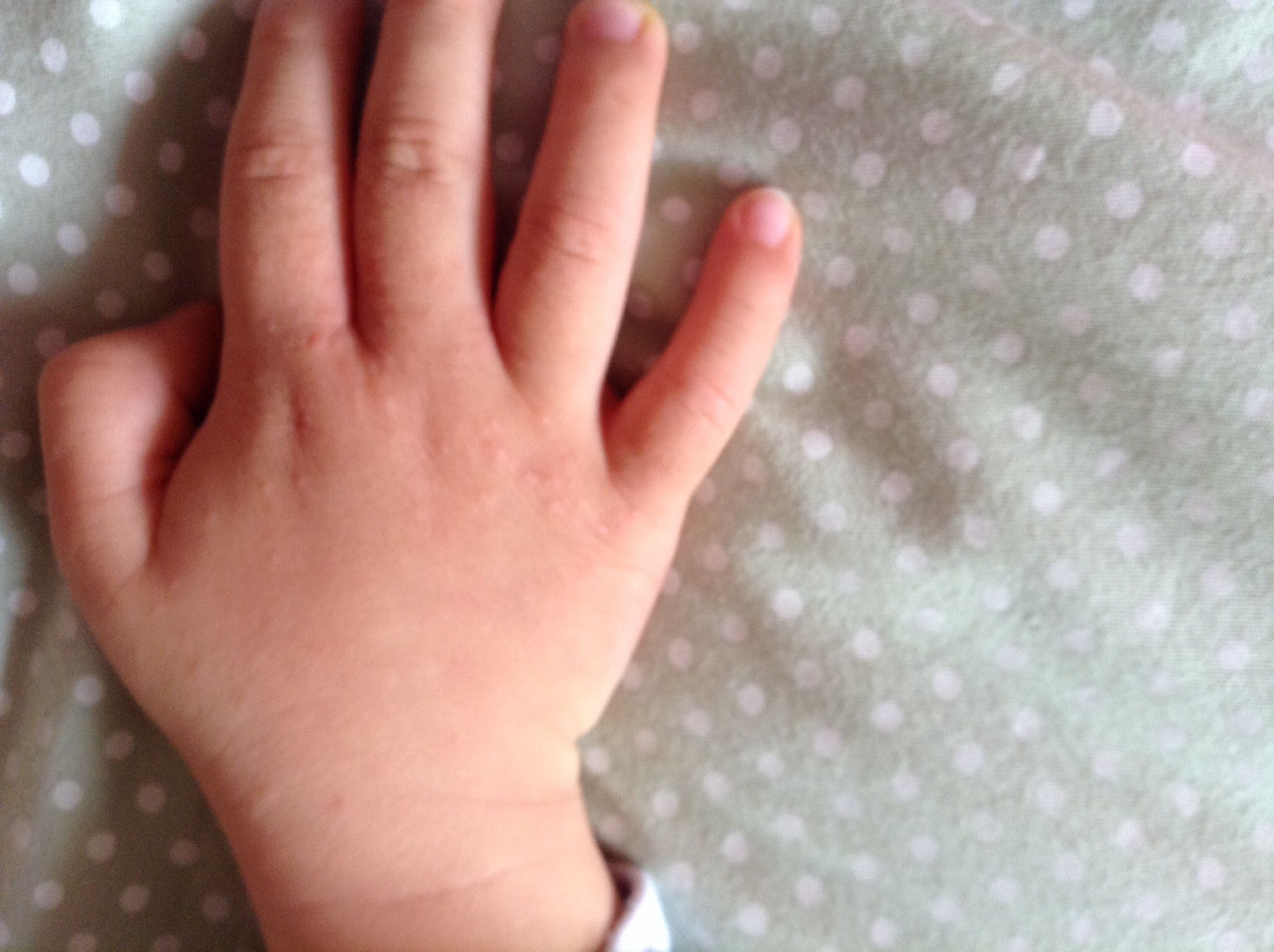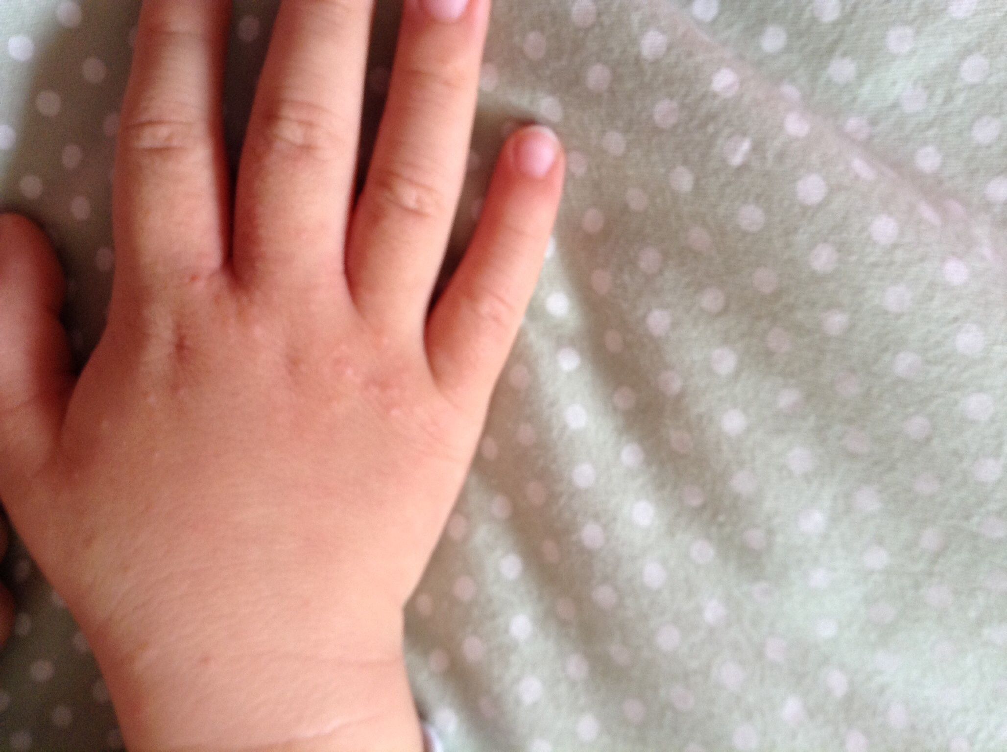 小孩手上起小疙瘩,一片片的,手指缝里主要是,两个手都有 点击展开 匿名用户 2013-12-15 10:15 为您推荐: 其他回答 病情分析: 您孩子的情况可能还是湿疹引起的, 指导意见: 小儿湿疹是一种过敏性皮肤病,主要原因是对食入物、吸入物或接触物不耐受或过敏所致。您可以在孩子的患处用炉甘石洗剂涂拭缓解症状 居高洁_uuAP 2013-12-15 10:22 相关问题 小孩手上长的小疙瘩,手背上手腕,最开始是手指缝,痒 是怎么回事 小宝宝八个月,昨天手上起了一两个小疙瘩,今天手有些浮肿,今天去社区医院问说是病毒引起的疱疹 有遇到