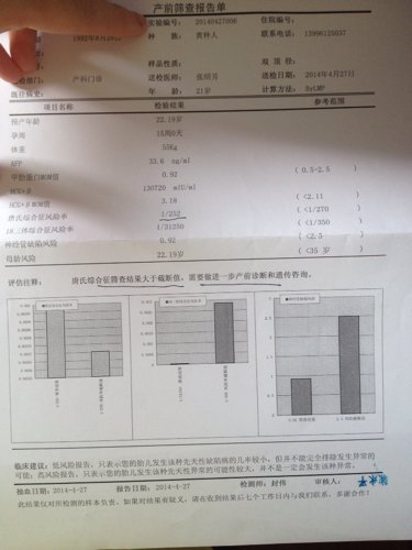 病情分析: 你好,你现在的筛查显示唐氏风险是1:252,是属于高风险。 指导意见: 1、唐氏筛查只是一种风险评估方法,不是确诊方法,所以只有高风险或是低风险的概念,而没有一定是畸形或是不是畸形的表述,也没有正常和不正常的界限。 2、如果是低风险,一般可以比较放心,相对来说畸形的可能性小;如果是高风险...