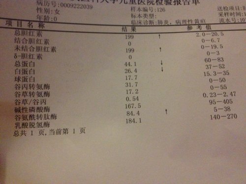 从这四份报告可以判断宝宝属于什么性质的黄疸吗 从这四份报告可以判断宝宝属于什么性质的黄疸吗 点击展开 匿名用户 2014-03-23 21:14 为您推荐: 其他回答 病情分析: 你好,这种情况一般是提示有梗阻性或溶血性黄疸的,需要进一步做一下腹部彩超,明确诊断的。 指导意见: 建议你可以给孩子进一步做一下腹部彩超,看是否会有先天性的胆管闭锁之类的,排外一下。 匿名用户 2014-03-23 21:22 相关问题 怎样判断婴儿黄疸属于什么性质的黄疸 宝宝20天黄疸没有消退,去医院皮测18 5,血液血清化验单如下,能帮忙看看是属于什么性质的黄疸吗? 宝宝20天黄疸没有消退,去医院皮测18 5,血液血清化验单如下,能帮忙看看是属于什么性质的黄疸吗?