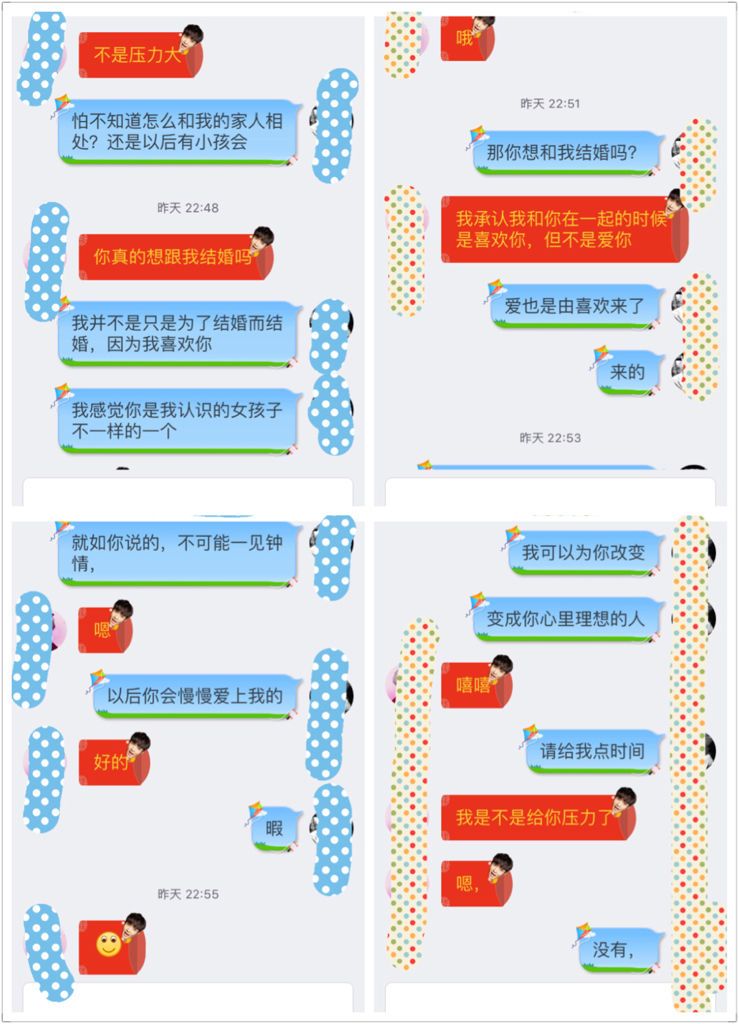 其实你们俩各自对这份交往都没有太大信心。原因主要就是异地。不方便你们相互交往和了团局解。从聊天内容上看,我感觉她也只是担心,也只是迷茫,安剩稼也因此不敢大胆地将感情坊基付出,担心如果不行会受伤会痛苦。在这种交往情况下,你不要步步紧逼,会适得其反,想办法尽快让两个人在生活工作在一个城市,交往多了,了解多了何去何从也就清楚了。现在这种情况,也谈不上什么恋情,彼此都很小心谨慎。情感上基本上还没有交流。