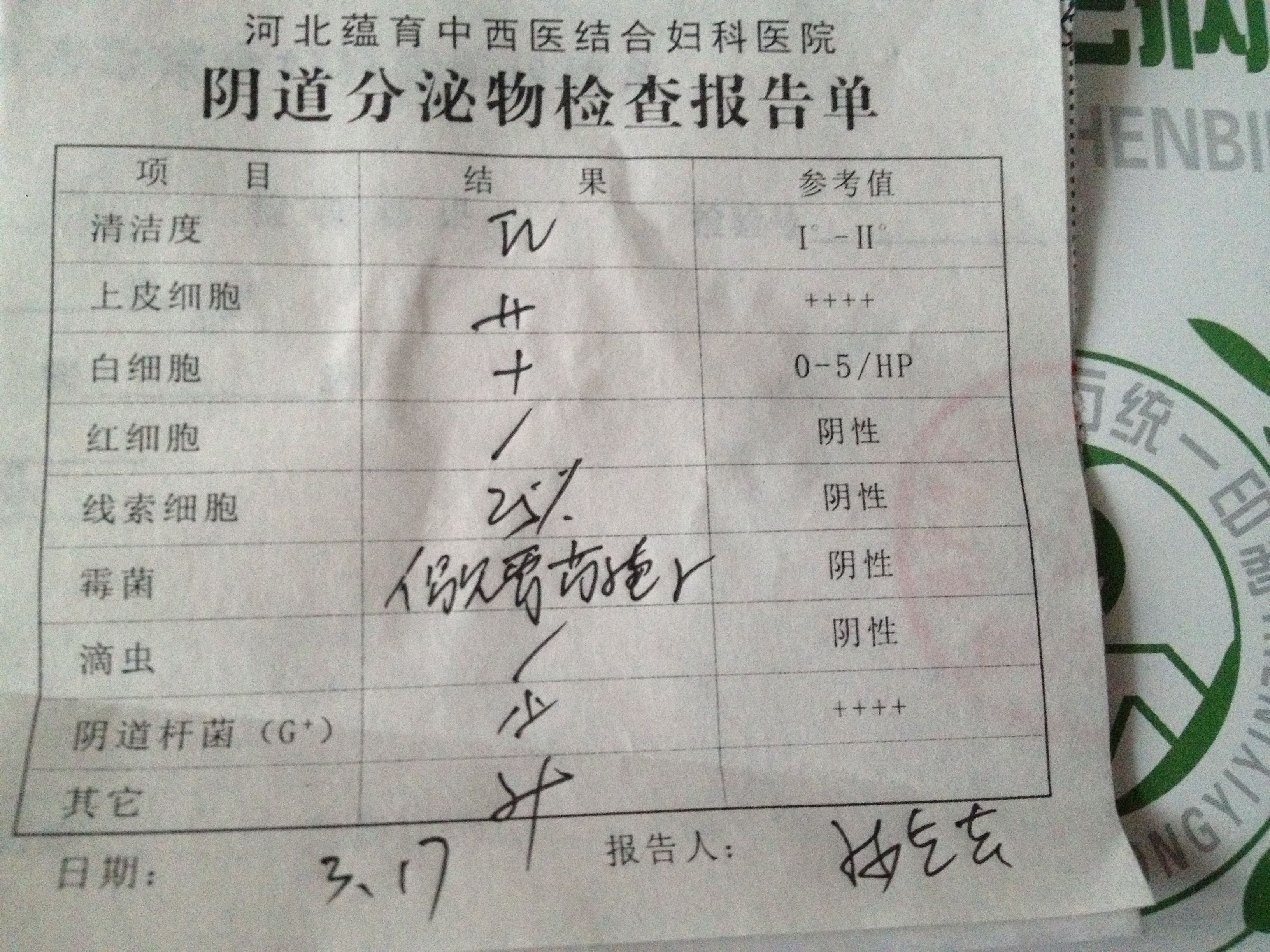 检查报告单 霉菌阴性医生说我有霉菌性阴道炎 请问是怎么回事?是不是有宫颈糜烂?需要做什么检查吗? 点击展开 匿名用户 2014-03-17 14:23 为您推荐: 其他回答 病情分析: 这是白带常规的检查了。您的检查结果是有细菌性阴道炎的情况了。宫颈糜烂是要通过妇检来判断的。 指导意见: 您的情况是可以用抗真菌的药物来治疗您的霉菌感染的情况的。 匿名用户 2014-03-17 14:41 相关问题 现在34周了检查有霉菌性阴道炎跟宫颈糜烂轻度!能顺产嘛? 我有霉菌性阴道炎还有重度宫颈糜烂!该怎么办? 霉菌性阴道炎宫颈糜烂怎么办?