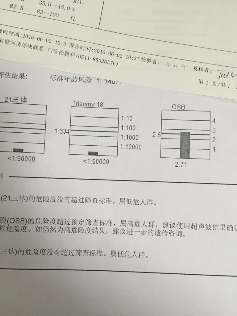 这个有个osb偏高了,到底要不要紧,真的很紧张 这个有个osb偏高了,到底要不要紧,真的很紧张 点击展开 美丽的gad 2016-06-02 22:04 为您推荐: 其他回答 不太清楚…😃 我的所爱 2016-06-02 23:24 您好,这个属于高风险的,建议您可以查一下彩超排除一下畸形,也可以做无创基因检测看一下的 1985 2016-06-02 22:11 不太清楚… Mmmm孩子 2016-06-02 22:11 医生说咋办就咋办 小乖佳佳 2016-06-02 22:11 问问医生啊 183*****677_dCjB 2016-06-02 22:09 加载更多 相关问题 今天去产检,脐动脉sd值3 7,医生说偏高,叫我在家数胎动,3天复查,很紧张,有跟我一样的吗?要紧吗? osb1 351偏高严重吗