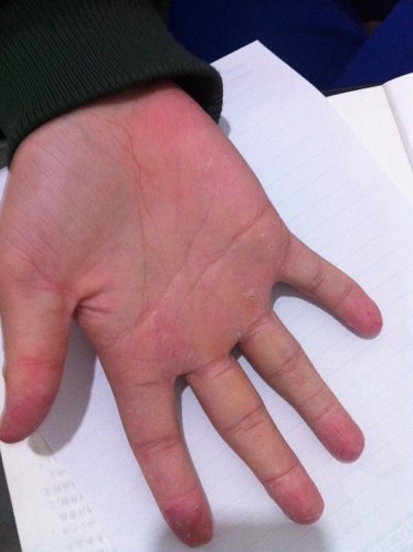 到了冬天,小孩子(13岁)的双手十指会脱皮开裂,此现象有多年了 点击展开 匿名用户 2013-11-14 20:22 为您推荐: 其他回答 病情分析: 你好,根据你描述的情况分析考虑为细菌感染引起的,建议局部涂抹百多邦或者红霉素软膏即可 指导意见: 注意不要用手挤,尽量不要碰,否则会导致感染,需要提醒的是在近期不要食用辛辣寒凉的食物。祝你健康 匿名用户 2013-11-14 20:27 相关问题 12岁儿童双手经常脱皮冬天手指脱皮开裂怎么办? 真菌感染导致手开裂,痒怎么治我是两个孩子的妈妈,双手到冬天 我手脚到冬天容易开裂,夏天容易脱皮,请问应该怎么办?(谢谢…